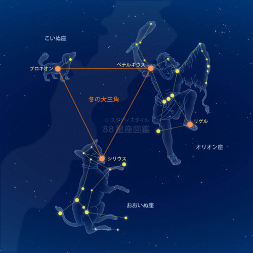 「オリオン座のベテルギウスが右上で、下がおおいぬ座の・・・」